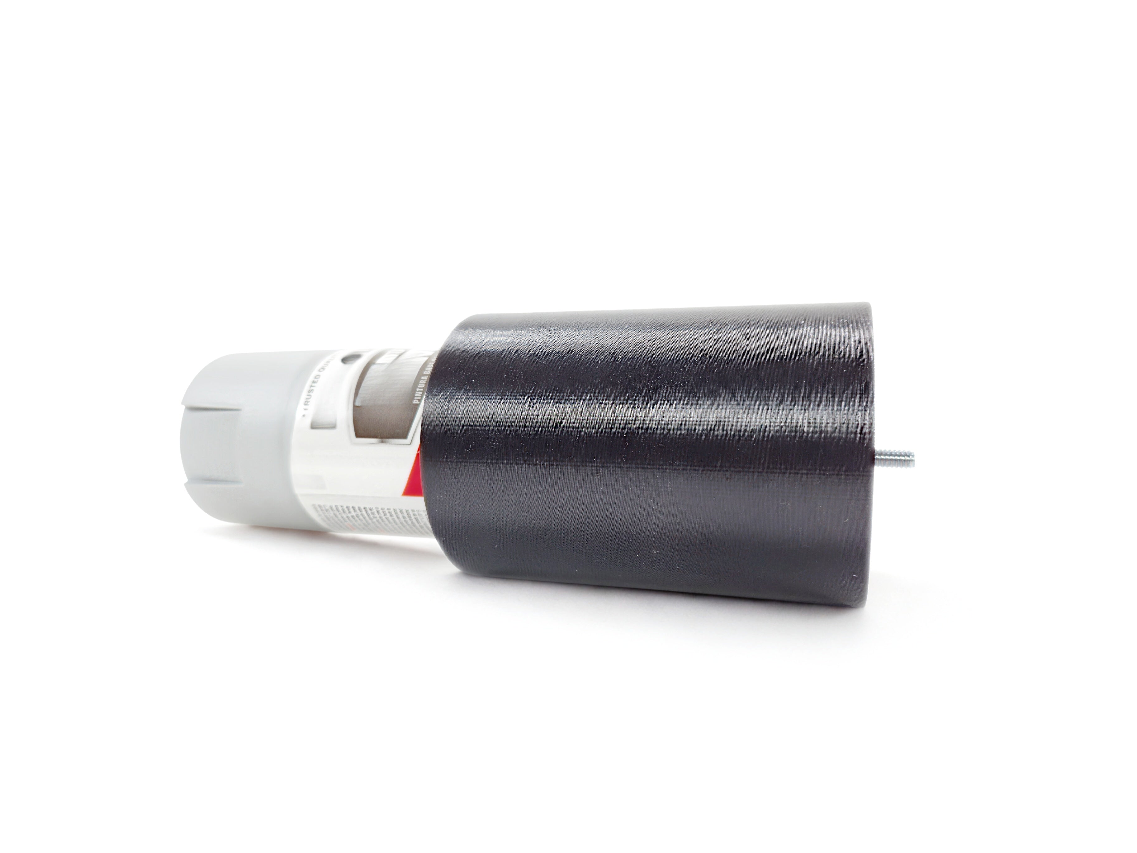 - Slide a standard aerosol spray paint can into the mixer’s plastic casing, ensuring it fits snugly against the rubber gasket for a secure, non-slip hold.